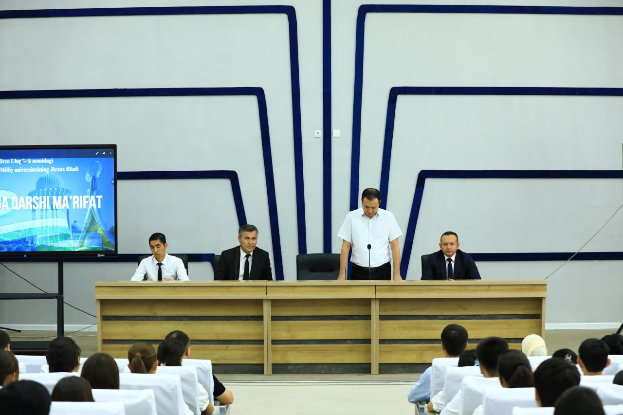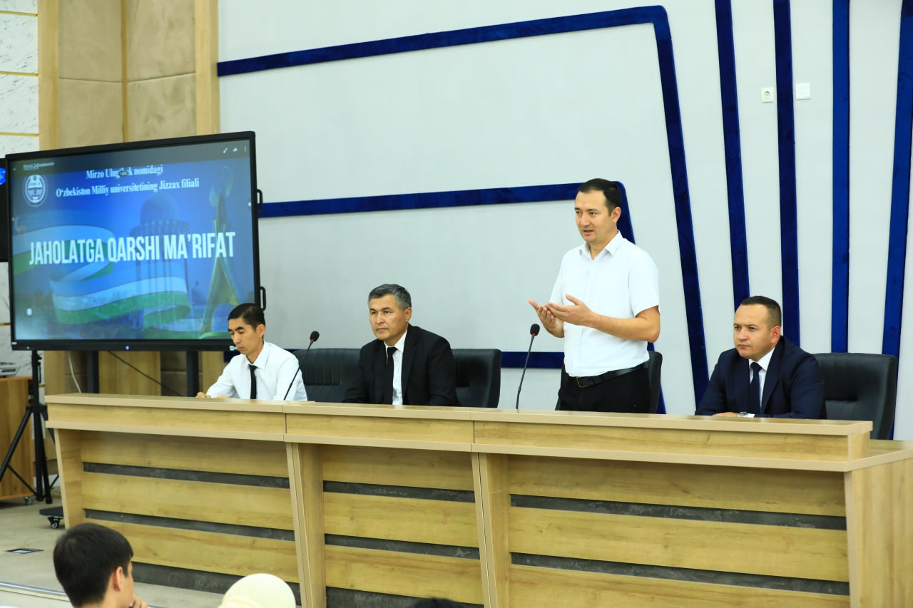 ⭕️Oʻzbekiston Milliy universiteti Jizzax filialida «Jaholatga qarshi ma’rifat» shiori ostida navbatdagi ma’naviy-ma’rifiy tadbir tashkil etildi.