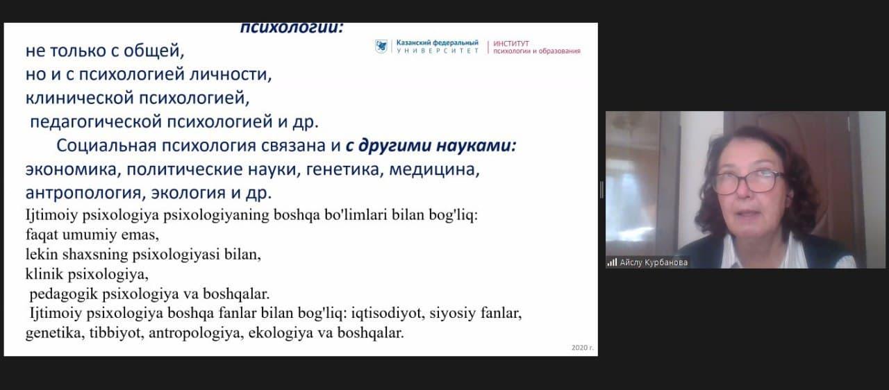 Shuningdek joriy yilning 7 oktyabrdan hozirgi kunga qadar Qozon Federal universiteti sosial psixologiya kafedrasi dosenti Ramil Ramziyevich Garifullin O‘zMU Jizzax filiali hamda Qozon Federal universiteti 3+1 qo‘shma ta’lim dasturi guruhi talabalari uchun ma’ruza mashg‘ulotini olib bormoqda.