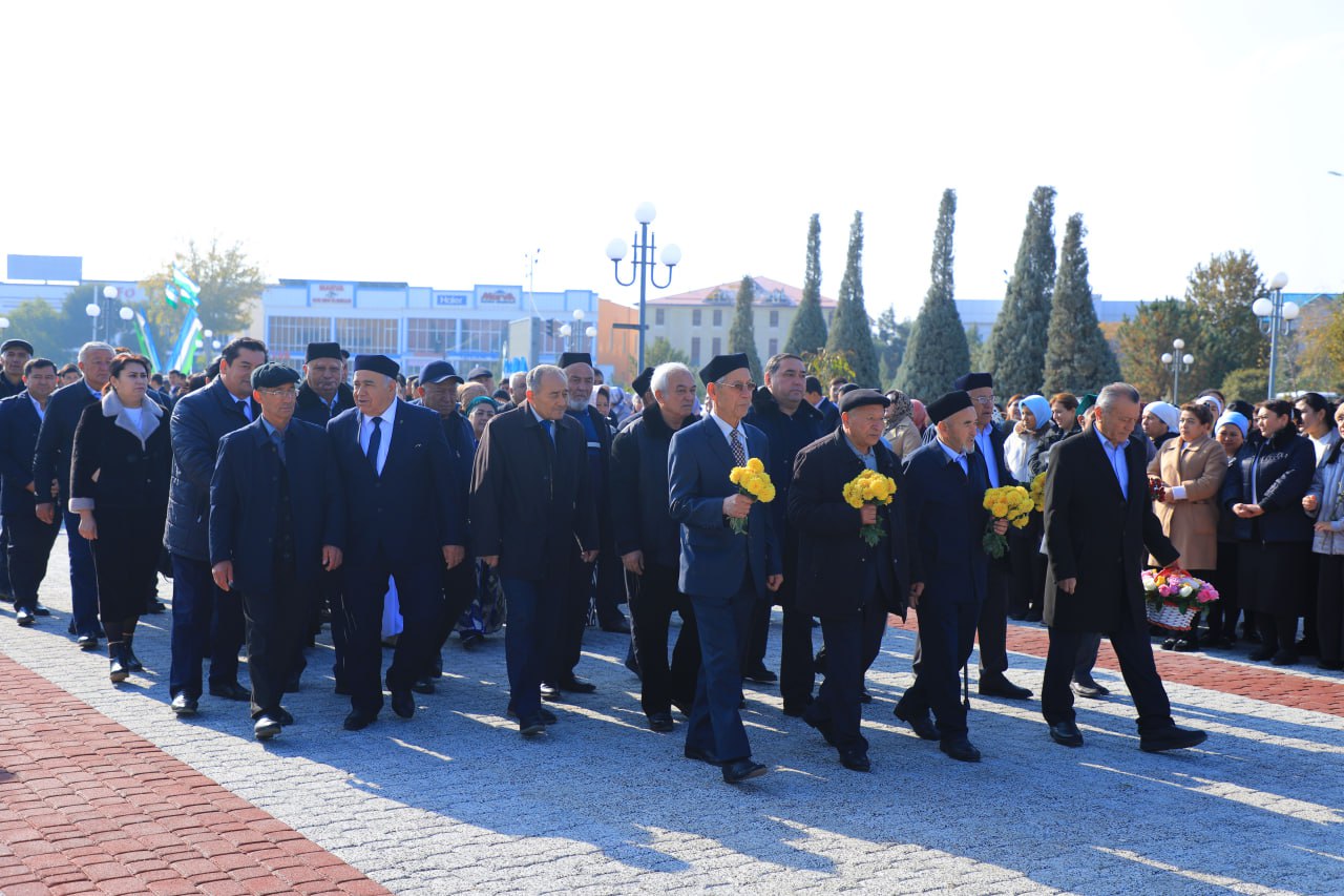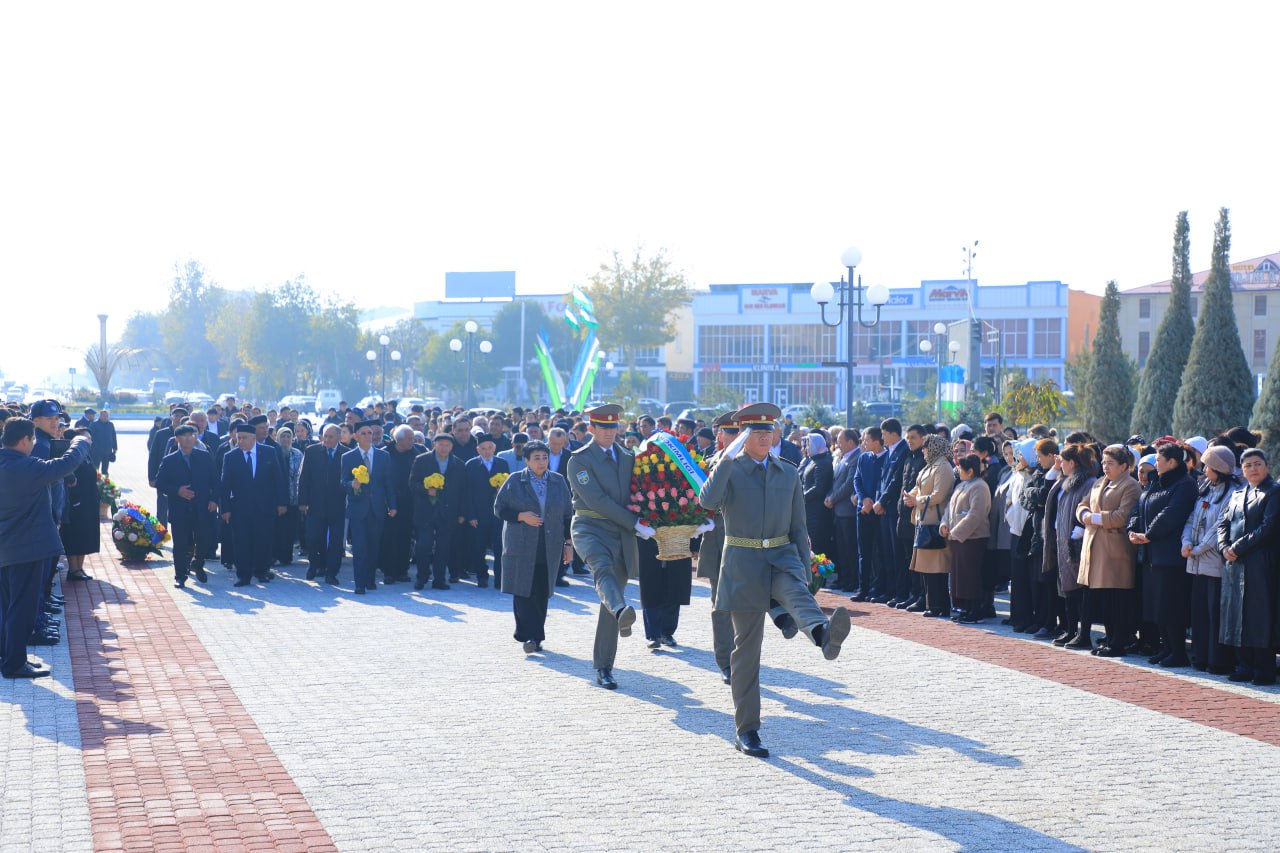 Tadbir yakunida viloyatdagi barcha tashkilotlar vakillaridan iborat faxriy karvon bobokalonimiz haykali poyiga gullar qo‘yishdi.